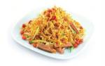Предварительно промытую курицу отваривают в подсоленном кипятке, а через полчаса дополняют перебранным рисом. Минут через десять в потихоньку бурлящий бульон высыпают тертую морковь, полоски сладкого перца и фасоль вместе с соусом. Все это приправляют порошкообразной паприкой и специями, доводят до готовности и совсем недолго настаивают под крышкой.