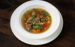 Если вы до сих пор не определились, с чем приготовить фасоль в томатном соусе, можно посоветовать обратить внимание на рецепт вкусного и сытного первого блюда. Оно предполагает использование не только консервированных бобов, но и овощей с мясом. Чтобы воспроизвести его в домашних условиях, вам потребуются: